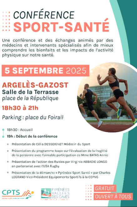 Conférence Sport Santé 5 septembre A VENIR : Conférence Sport Santé – Vendredi 5 Septembre Salle de la Terrasse 65400 Argelès Gazost By admin|2025-09-16T13:38:53+00:00août 14, 2025|archive|0 Comments Related Posts DEPISTAGE DU CANCER COLO-RECTAL – 03 Mars 2025 ( Cloned ) Gallery DEPISTAGE DU CANCER COLO-RECTAL – 03 Mars 2025 Gallery ASSEMBLEE GENERALE – 21 novembre 2024 Gallery SIGNATURE DES ACI Gallery